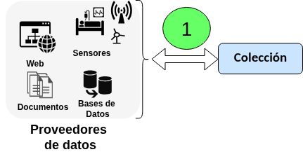 Como podemos observar en la figura siguiente, las fuentes de datos disponibles son muy variadas en cuanto a tipo, volúmen, estructura, etc. Justamente la colección se refiere a todas las tareas involucradas para su obtención y tratamiento futuro.